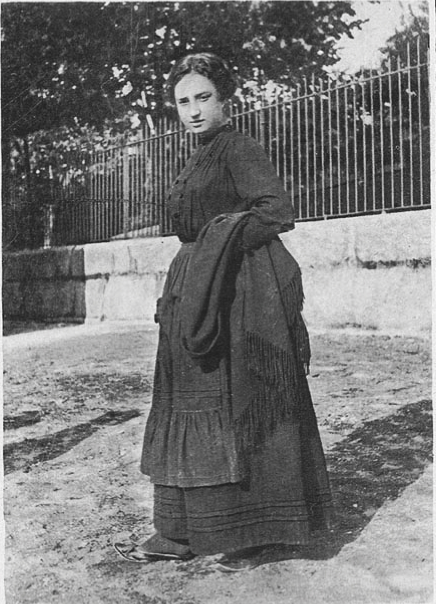 A tricana tecedeira de Guimarães ou é “Maria Rosa”, ou “Teresa do Sacramento”, ou “Maria de Oliveira” ou “Ana de Jesus”. Tem quatro saias brancas lisas, às ramagens amarelas, e chinelas de verniz, com laço, pelo Natal e em domingo de Passos. Tem xailes de luxo e sombrinha de seda só para a missa dos domingos. Quando, por doença, a da vida, recorre ao preguista da terra — ou seja ao “Costa-Queijo”. É, em rapariga, vaidosa da sua frescura e beleza; depois de casada, suja e desmazelada como mulher nenhuma deste mundo. Em geral não sabe ler.