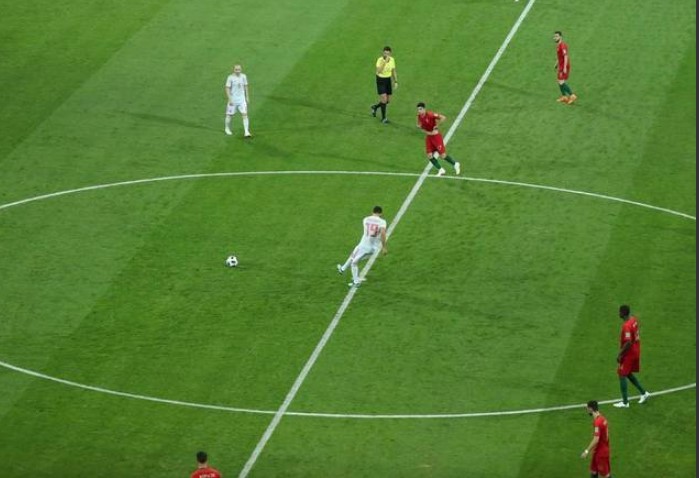 Mas o melhor jogador do mundo não deixaria a sua seleção ser derrotada na estreia do Mundial. Aos 43 minutos, Cristiano Ronaldo cobrou com perfeição uma falta frontal e igualou o placar novamente: 3 a 3.