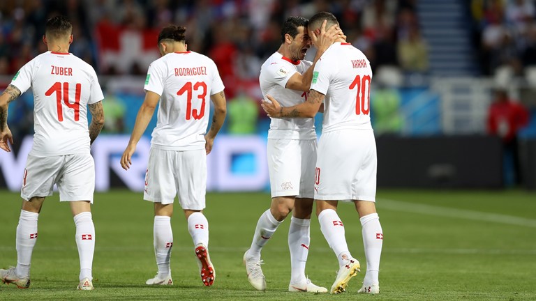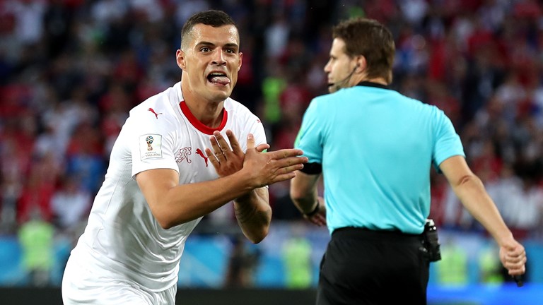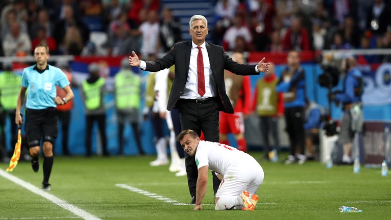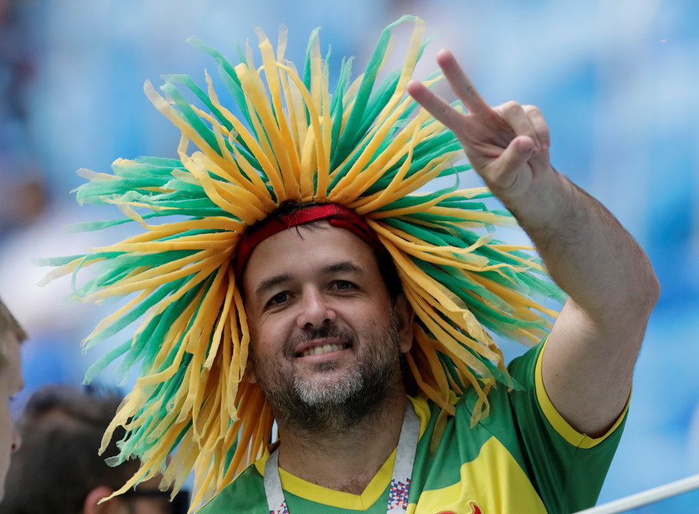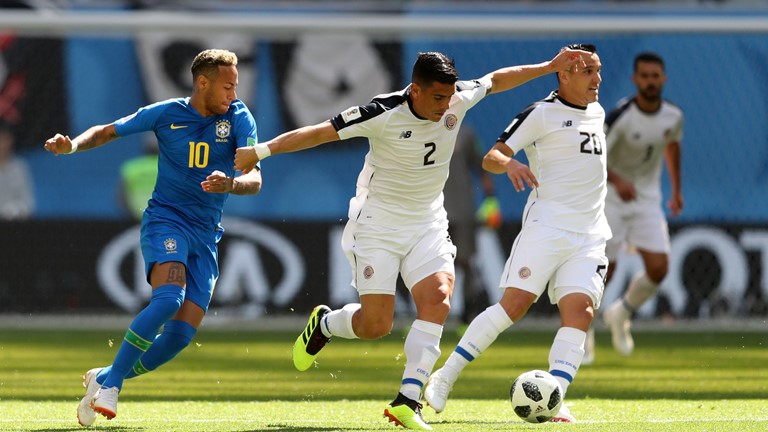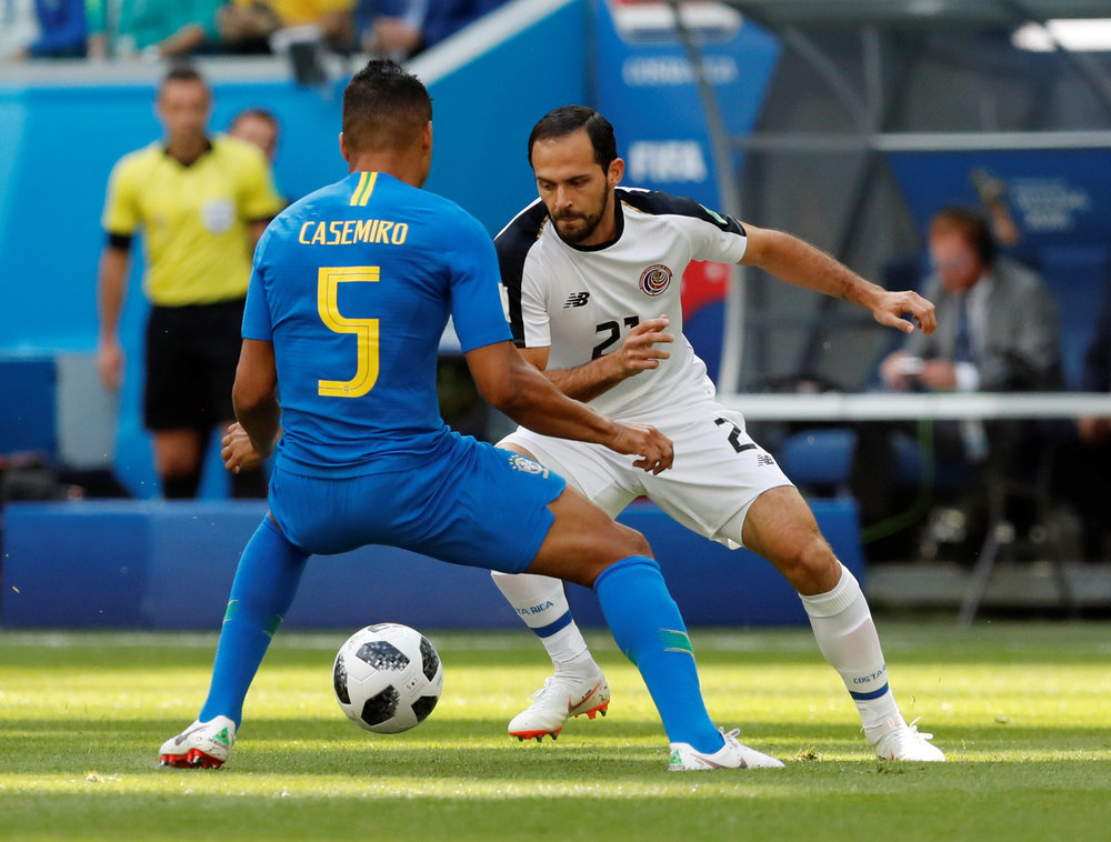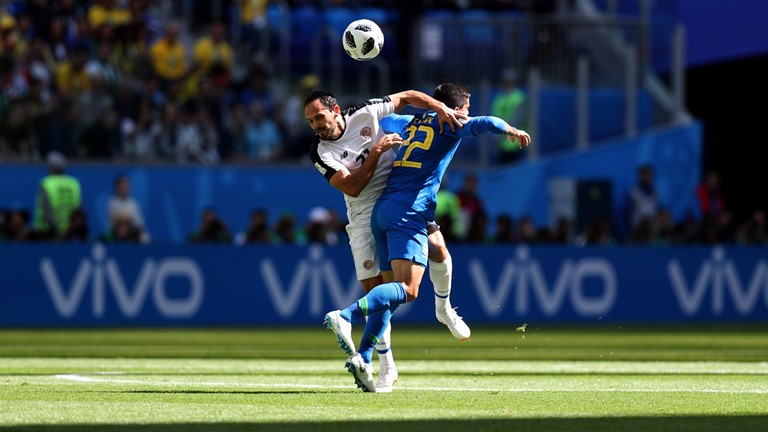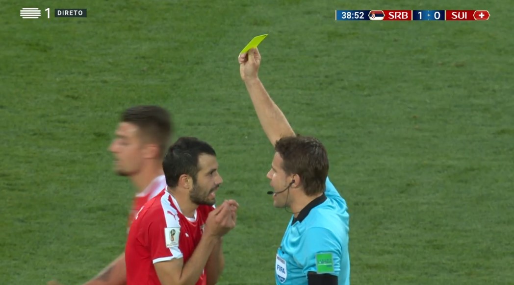 | O árbitro Anibal Tejeda (centro) e os auxiliares Ricardo Vallarino e Baldway posam com os capitães do Brasil, João Coelho Neto (também conhecido como Preguinho) e Milutin Ivkovic, da Iugoslávia. |